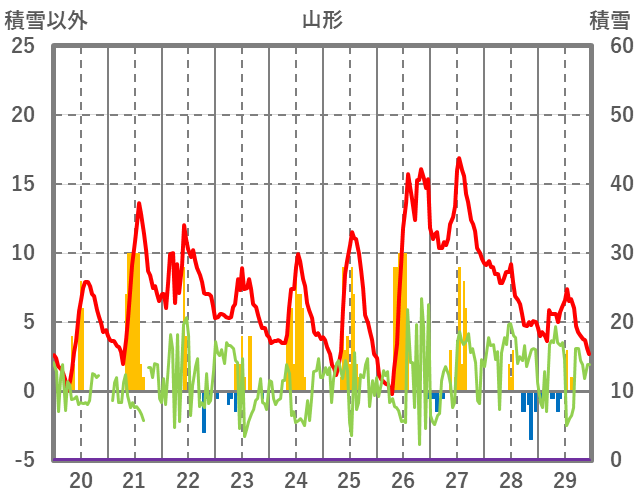 | 日 | 時 | 気温 | 降水 | 風向/風速 | 日照 | 積雪 | 降雪 |