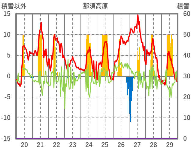 | 日 | 時 | 気温 | 降水 | 風向/風速 | 日照 | 積雪 | 降雪 |