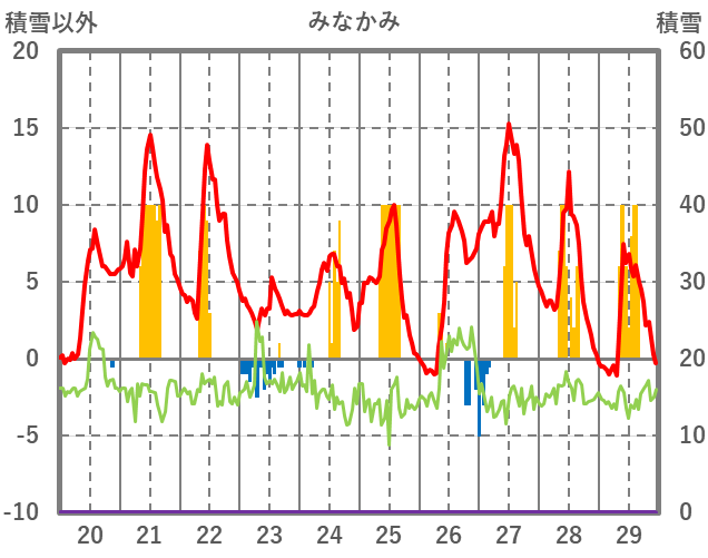 | 日 | 時 | 気温 | 降水 | 風向/風速 | 日照 | 積雪 | 降雪 |