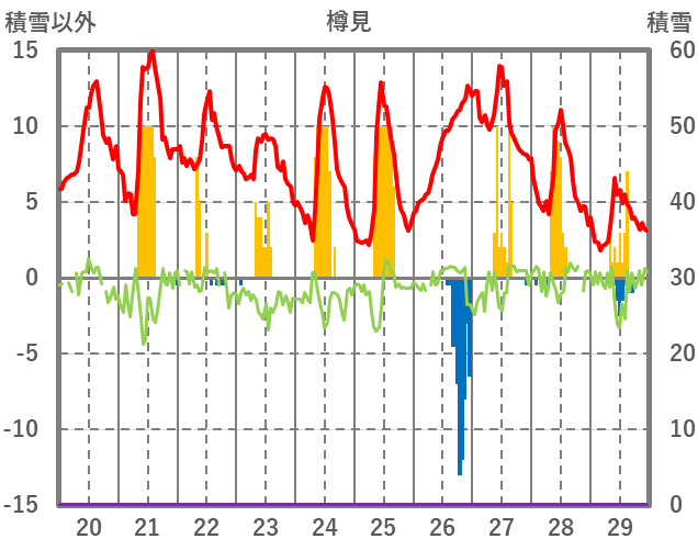 | 日 | 時 | 気温 | 降水 | 風向/風速 | 日照 | 積雪 | 降雪 |
