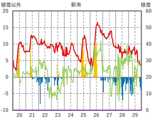 | 日 | 時 | 気温 | 降水 | 風向/風速 | 日照 | 積雪 | 降雪 |
