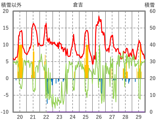 | 日 | 時 | 気温 | 降水 | 風向/風速 | 日照 | 積雪 | 降雪 |