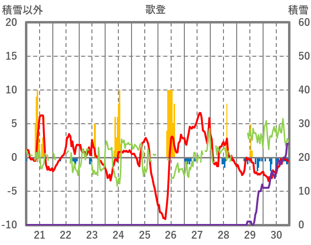 | 日 | 時 | 気温 | 降水 | 風向/風速 | 日照 | 積雪 | 降雪 |