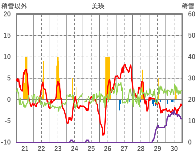 | 日 | 時 | 気温 | 降水 | 風向/風速 | 日照 | 積雪 | 降雪 |
