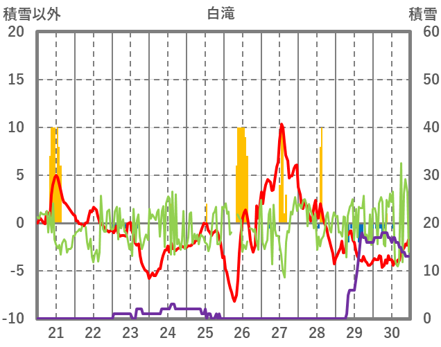 | 日 | 時 | 気温 | 降水 | 風向/風速 | 日照 | 積雪 | 降雪 |