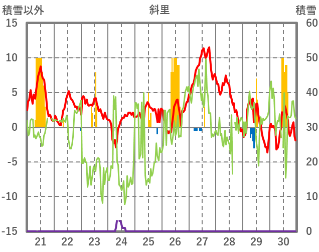 | 日 | 時 | 気温 | 降水 | 風向/風速 | 日照 | 積雪 | 降雪 |