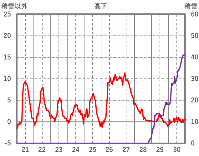 | 日 | 時 | 気温 | 降水 | 風向/風速 | 日照 | 積雪 | 降雪 |