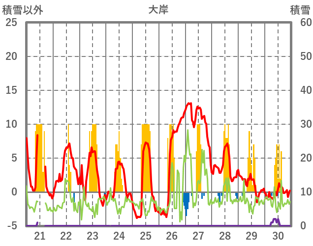 | 日 | 時 | 気温 | 降水 | 風向/風速 | 日照 | 積雪 | 降雪 |