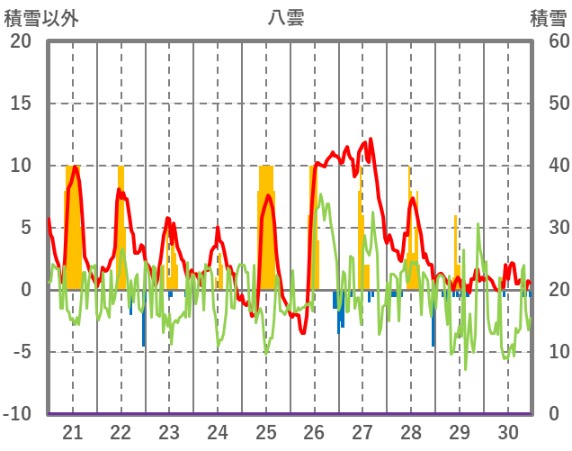 | 日 | 時 | 気温 | 降水 | 風向/風速 | 日照 | 積雪 | 降雪 |
