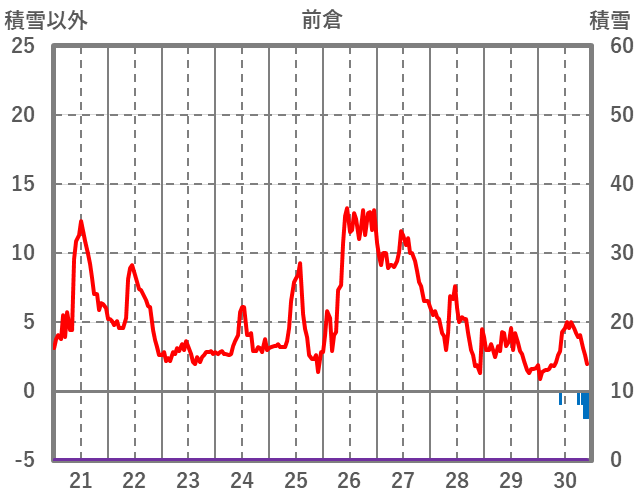 | 日 | 時 | 気温 | 降水 | 風向/風速 | 日照 | 積雪 | 降雪 |