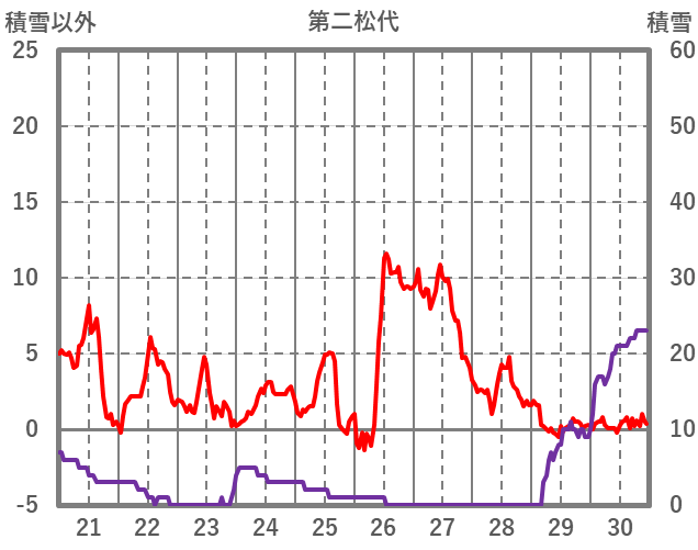| 日 | 時 | 気温 | 降水 | 風向/風速 | 日照 | 積雪 | 降雪 |