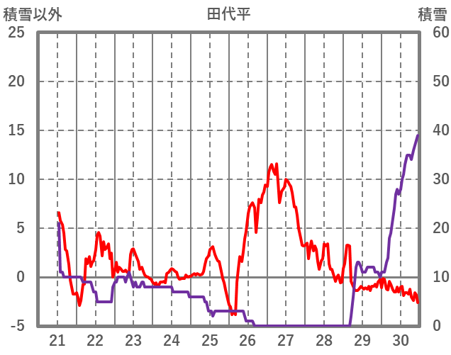 | 日 | 時 | 気温 | 降水 | 風向/風速 | 日照 | 積雪 | 降雪 |