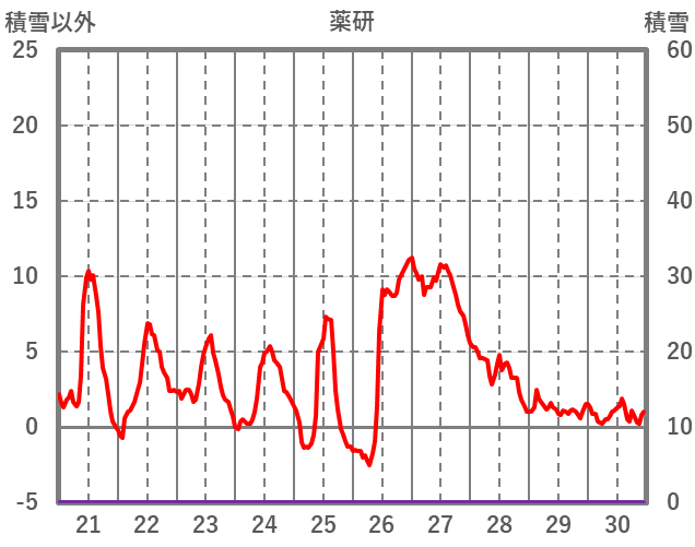 | 日 | 時 | 気温 | 降水 | 風向/風速 | 日照 | 積雪 | 降雪 |