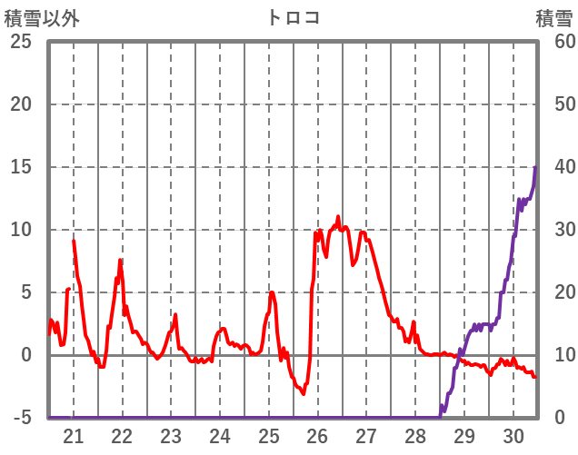 | 日 | 時 | 気温 | 降水 | 風向/風速 | 日照 | 積雪 | 降雪 |