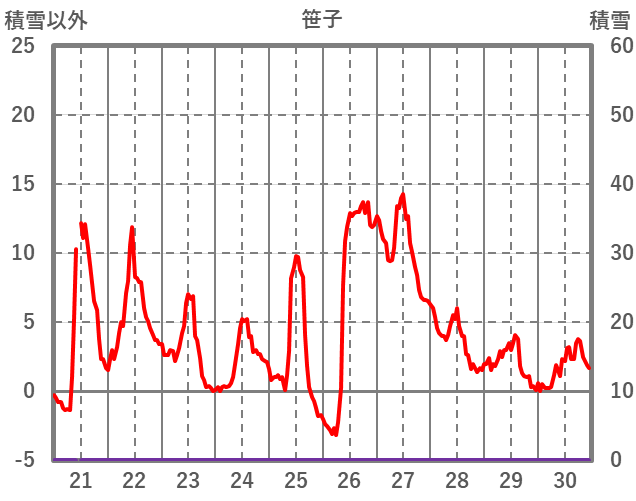 | 日 | 時 | 気温 | 降水 | 風向/風速 | 日照 | 積雪 | 降雪 |