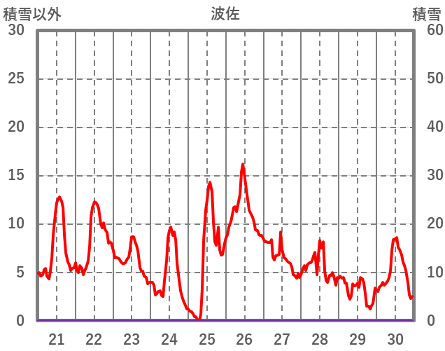 | 日 | 時 | 気温 | 降水 | 風向/風速 | 日照 | 積雪 | 降雪 |