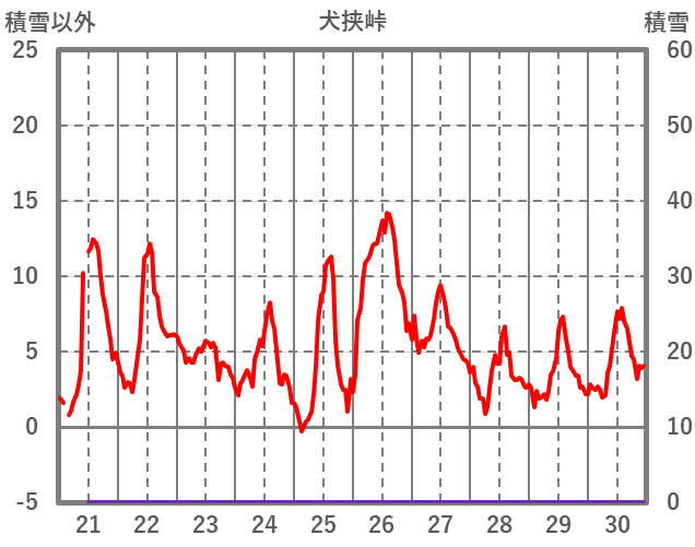 | 日 | 時 | 気温 | 降水 | 風向/風速 | 日照 | 積雪 | 降雪 |