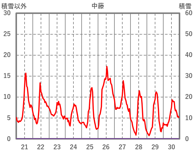 | 日 | 時 | 気温 | 降水 | 風向/風速 | 日照 | 積雪 | 降雪 |