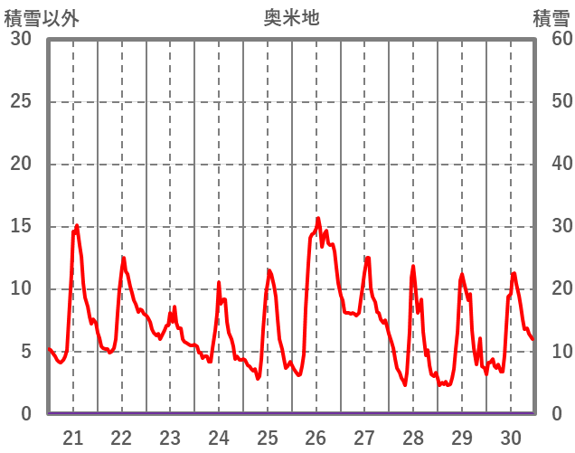 | 日 | 時 | 気温 | 降水 | 風向/風速 | 日照 | 積雪 | 降雪 |