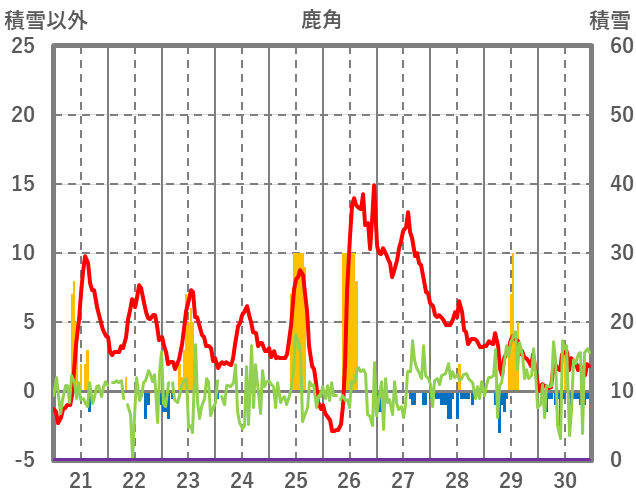 | 日 | 時 | 気温 | 降水 | 風向/風速 | 日照 | 積雪 | 降雪 |