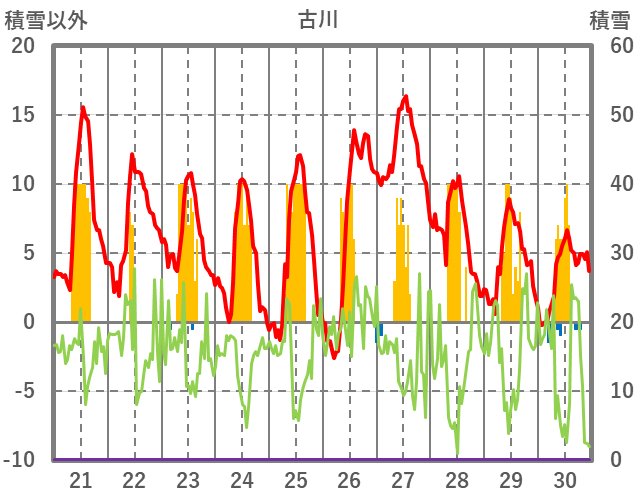 | 日 | 時 | 気温 | 降水 | 風向/風速 | 日照 | 積雪 | 降雪 |