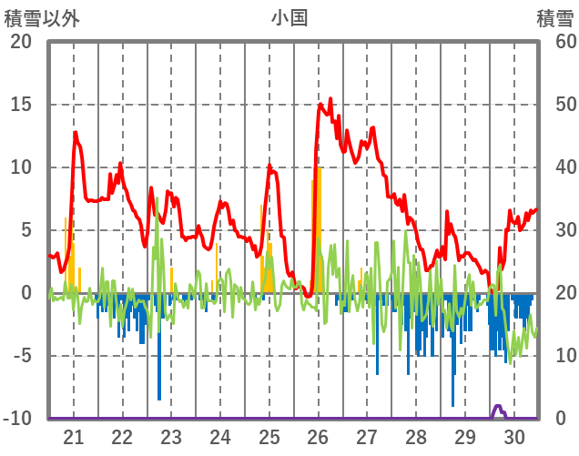 | 日 | 時 | 気温 | 降水 | 風向/風速 | 日照 | 積雪 | 降雪 |