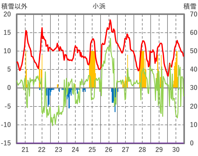 | 日 | 時 | 気温 | 降水 | 風向/風速 | 日照 | 積雪 | 降雪 |