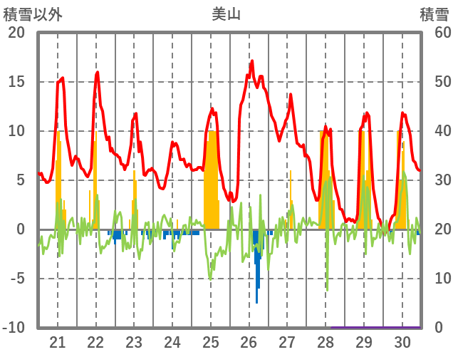 | 日 | 時 | 気温 | 降水 | 風向/風速 | 日照 | 積雪 | 降雪 |