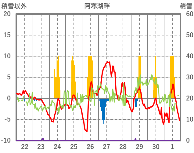 | 日 | 時 | 気温 | 降水 | 風向/風速 | 日照 | 積雪 | 降雪 |