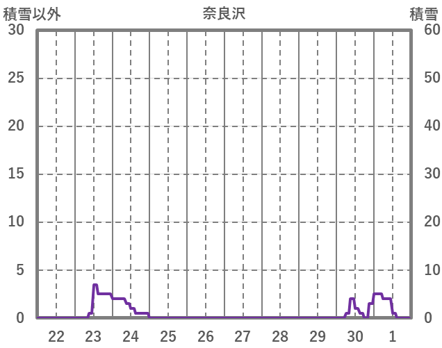 | 日 | 時 | 気温 | 降水 | 風向/風速 | 日照 | 積雪 | 降雪 |