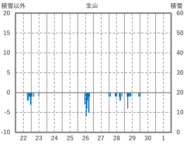 | 日 | 時 | 気温 | 降水 | 風向/風速 | 日照 | 積雪 | 降雪 |