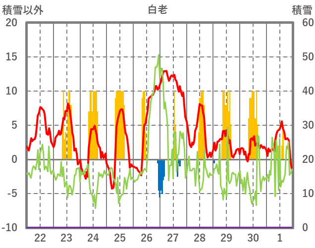 | 日 | 時 | 気温 | 降水 | 風向/風速 | 日照 | 積雪 | 降雪 |