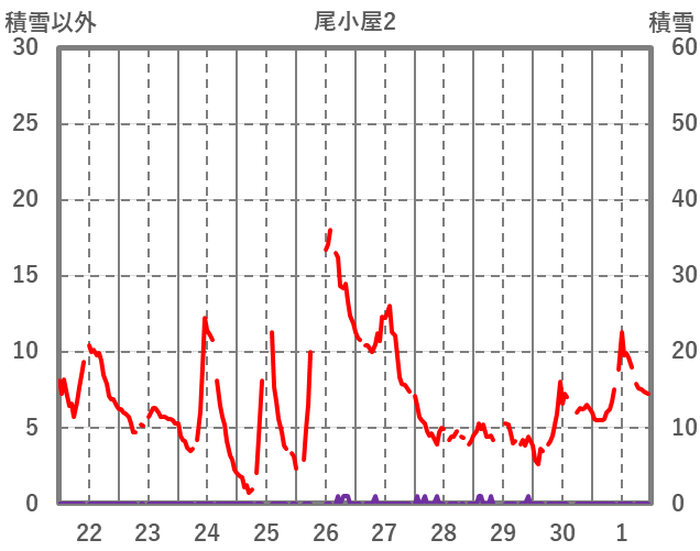 | 日 | 時 | 気温 | 降水 | 風向/風速 | 日照 | 積雪 | 降雪 |