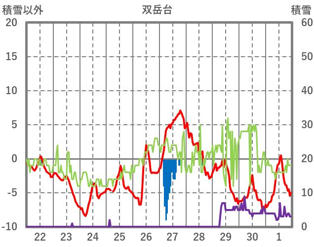 | 日 | 時 | 気温 | 降水 | 風向/風速 | 日照 | 積雪 | 降雪 |