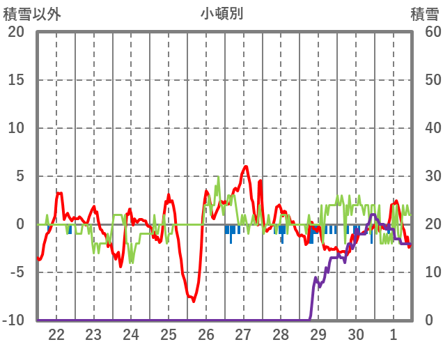 | 日 | 時 | 気温 | 降水 | 風向/風速 | 日照 | 積雪 | 降雪 |