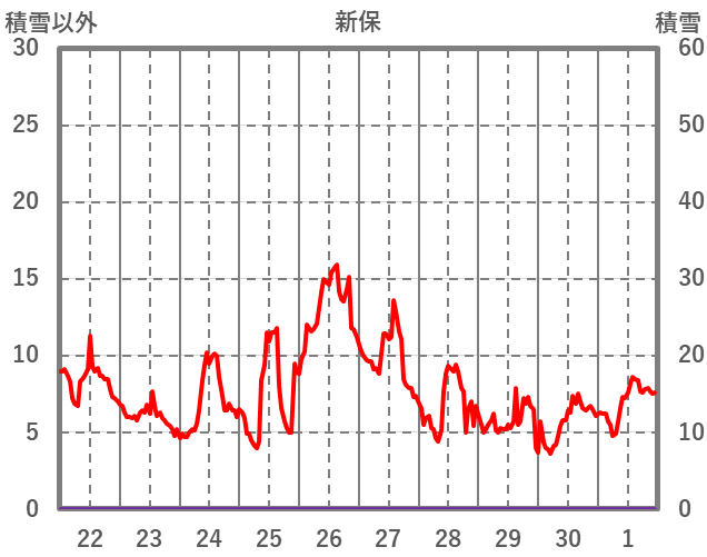 | 日 | 時 | 気温 | 降水 | 風向/風速 | 日照 | 積雪 | 降雪 |