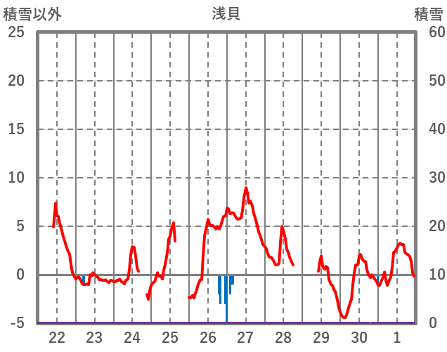 | 日 | 時 | 気温 | 降水 | 風向/風速 | 日照 | 積雪 | 降雪 |