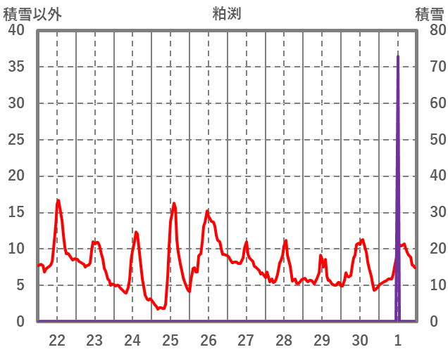 | 日 | 時 | 気温 | 降水 | 風向/風速 | 日照 | 積雪 | 降雪 |