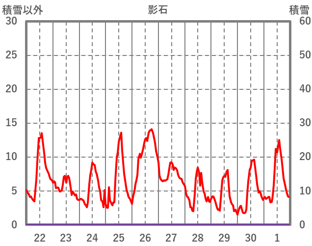 | 日 | 時 | 気温 | 降水 | 風向/風速 | 日照 | 積雪 | 降雪 |