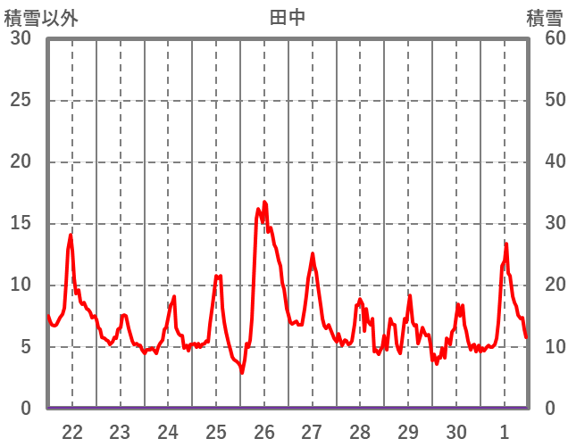 | 日 | 時 | 気温 | 降水 | 風向/風速 | 日照 | 積雪 | 降雪 |