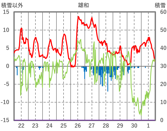 | 日 | 時 | 気温 | 降水 | 風向/風速 | 日照 | 積雪 | 降雪 |