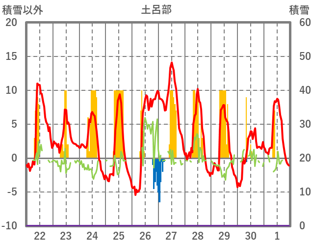 | 日 | 時 | 気温 | 降水 | 風向/風速 | 日照 | 積雪 | 降雪 |