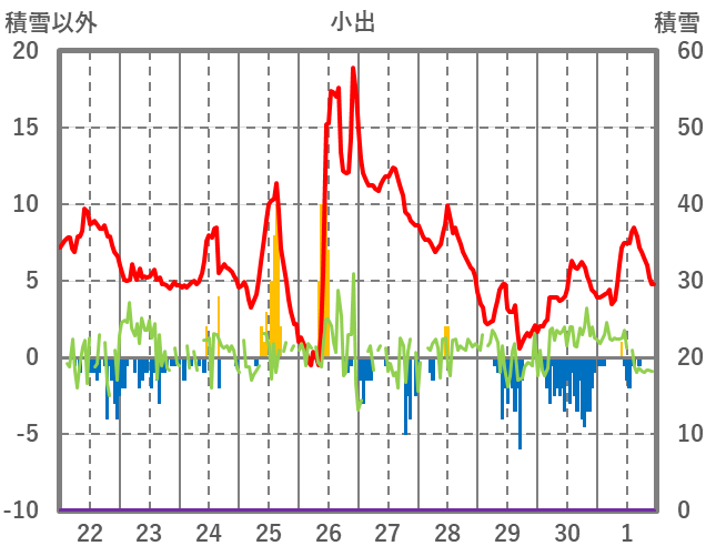 | 日 | 時 | 気温 | 降水 | 風向/風速 | 日照 | 積雪 | 降雪 |