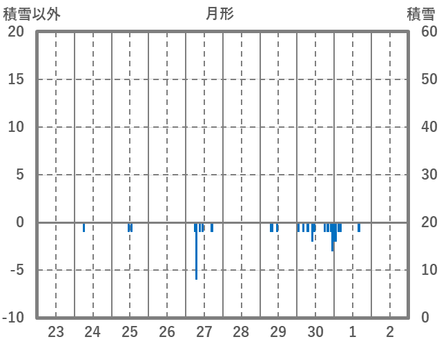 | 日 | 時 | 気温 | 降水 | 風向/風速 | 日照 | 積雪 | 降雪 |