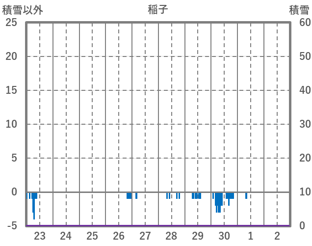 | 日 | 時 | 気温 | 降水 | 風向/風速 | 日照 | 積雪 | 降雪 |