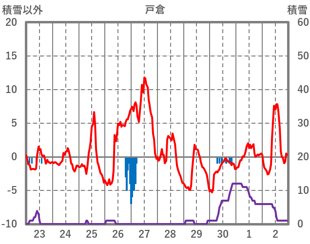 | 日 | 時 | 気温 | 降水 | 風向/風速 | 日照 | 積雪 | 降雪 |