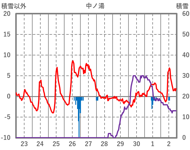| 日 | 時 | 気温 | 降水 | 風向/風速 | 日照 | 積雪 | 降雪 |