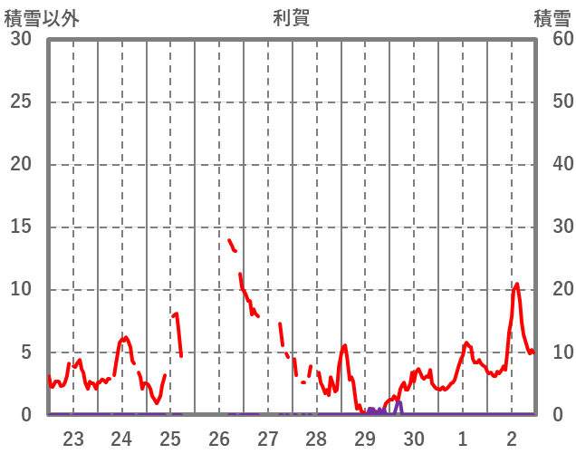 | 日 | 時 | 気温 | 降水 | 風向/風速 | 日照 | 積雪 | 降雪 |