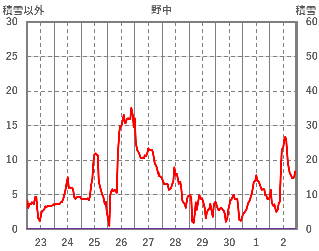 | 日 | 時 | 気温 | 降水 | 風向/風速 | 日照 | 積雪 | 降雪 |