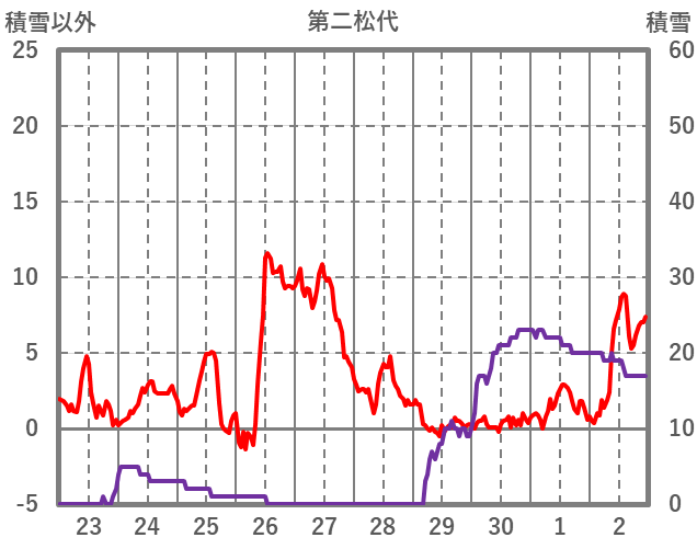 | 日 | 時 | 気温 | 降水 | 風向/風速 | 日照 | 積雪 | 降雪 |